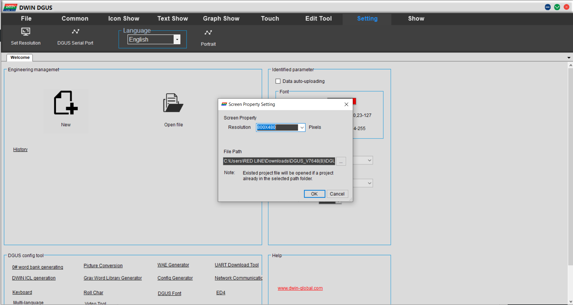 - برای شروع کار، ابتدا وارد وبسایت رسمی شرکت DWIN به آدرس (لینک) شوید. سپس از بخش T5L DGUS آخرین نسخه نرمافزار DGUS را دریافت کنید. بعد از اتمام دانلود،فایل فشرده را استخراج کرده و در پوشه ایجاد شده به دنبال فایل اجرایی DGUS_V7637.EXE (یا نسخه بهروزتر آن) بگردید و اجرا کنید.