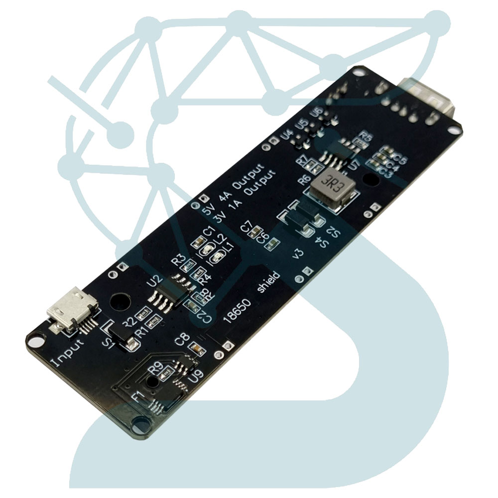 شیلد پاوربانک 18650 مدل V3، یک برد همهکاره و جمعوجور مخصوص سلول لیتیومیون 18650 است که علاوه بر تأمین برق ۵ ولت (USB-A)، یک خروجی ولتاژ ۳ ولت هم دارد. این ویژگی، شیلد را مناسب پروژههایی میکند که نیاز به هر دو سطح ولتاژ (۵ و ۳ ولت) دارند؛ دقیقاً همان چیزی که برای تغذیه مستقیم بردهای میکروکنترلر (مثل ESP8266، ESP32، سنسورهای کممصرف و …) اهمیت دارد.