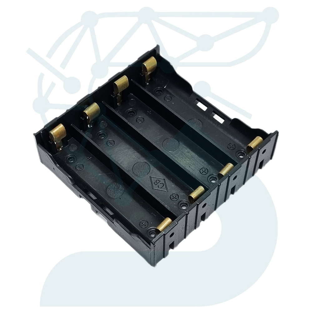 جاباتری 18650 چهارتایی بدون سیم یک هولدر باتری بردی (PCB Mount) است که برای استفاده همزمان از چهار سلول باتری لیتیومی سایز 18650 در مدارهای الکترونیکی طراحی شده است. این مدل فاقد سیم خروجی بوده و تمامی اتصالات الکتریکی از طریق پایههای فلزی و مسیرهای طراحیشده روی برد انجام میشود.