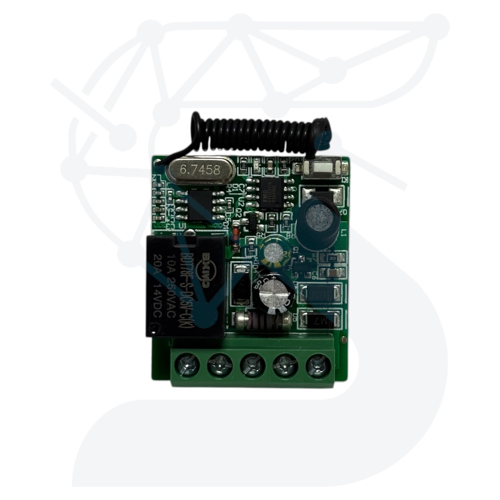 این ماژول یک گیرنده رادیویی تککاناله با فرکانس کاری 433 مگاهرتز است که برای کنترل بارهای AC تا ولتاژ 220 ولت طراحی شده است. وجود رله داخلی امکان قطع و وصل مستقیم مصرفکنندههایی مانند روشنایی، فن، پمپ کوچک یا تجهیزات کنترلی را بدون نیاز به مدار واسط فراهم میکند.