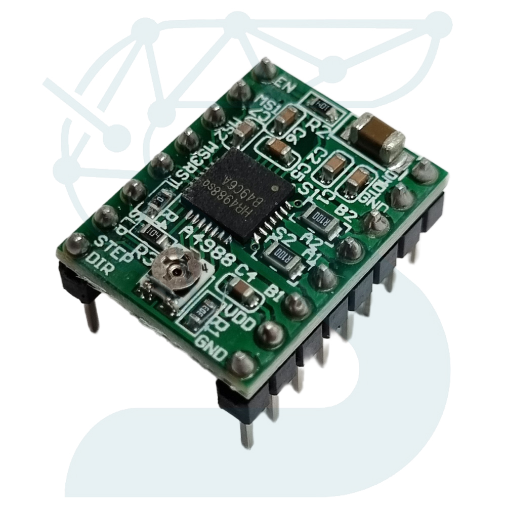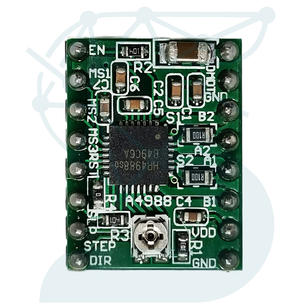 درایور A4988 یکی از مشهورترین و پایدارترین ماژولهای کنترل موتور پلهای از نوع Bipolar است که در بسیاری از پروژههای حرکتی دقیق، مانند پرینترهای سهبعدی، دستگاههای CNC کوچک، رباتهای حرکتی مرحلهای و سیستمهای موقعیتیابی مورد استفاده قرار میگیرد. این ماژول بر پایه تراشه قدرتمند A4988 طراحی شده و امکان کنترل نرم، دقیق و بدون لرزش موتور را فراهم میکند.