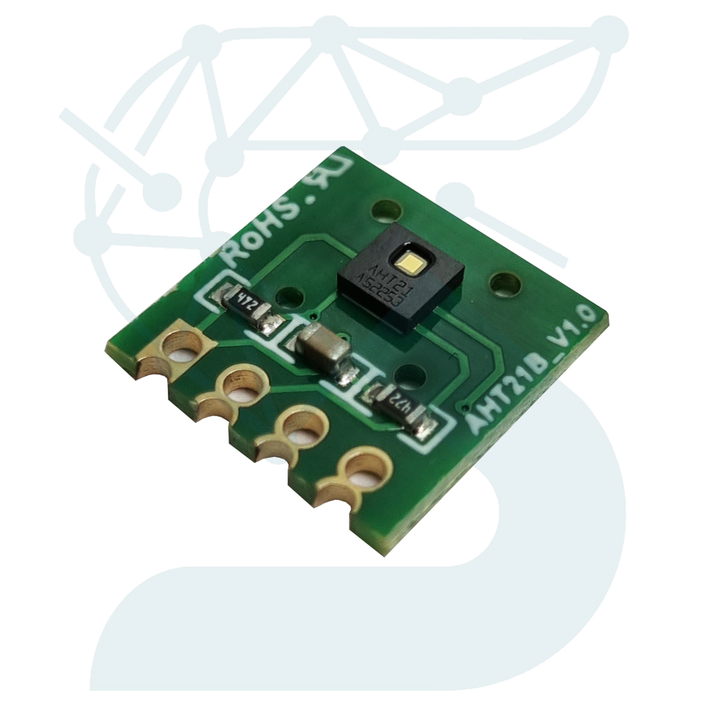 ماژول AHT21 یک سنسور دیجیتال نسل جدید برای اندازهگیری دقیق دما (°C) و رطوبت (%RH) محیط است که بر پایه فناوری سنجش خازنی و دماسنج سیلیکونی ساخته شده است. این سنسور نسبت به نسلهای قبلی مانند DHT22 یا AM2302 دقت بالاتر، پایداری بیشتر و اندازه کوچکتر دارد و از طریق رابط دو سیم I²C با میکروکنترلرها ارتباط برقرار میکند.
