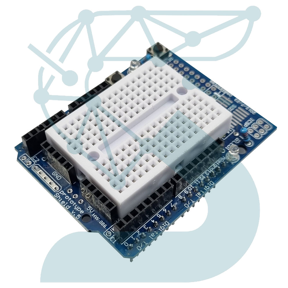 شیلد پرومیک یا همان شیلد پروتوتایپ (ProtoShield) یک بستر توسعه و تست سریع برای پروژههای آردوینو است. این شیلد به صورت ماژول بالای برد Arduino نصب میشود و امکان نمونهسازی، تست، و تغییر بدون نیاز به لحیمکاری را فراهم میکند. وجود یک مینی بردبورد (breadboard) قابل جداشدن، خطوط ولتاژ و زمین، پدهای لحیمکاری و کلیدهای فشاری (Push Button) در این مدل باعث شده کاربردیترین گزینه برای تست و پیادهسازی مدارهای آزمایشی باشد.