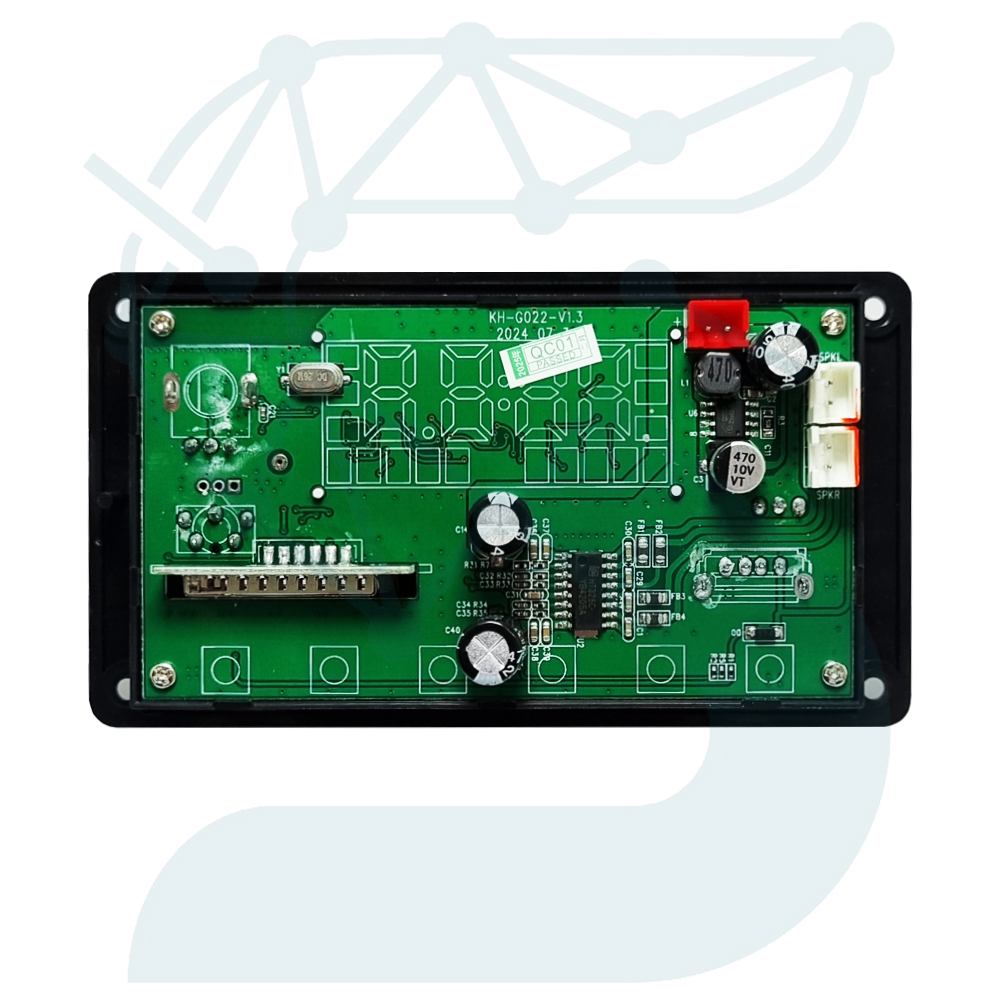 پلیر صوتی مدل G022 یک ماژول چندمنظوره قدرتمند با آمپلیفایر داخلی 2×40 وات واقعی است که امکان پخش موسیقی از طریق منابع مختلف را فراهم میکند. این دستگاه علاوه بر ورودیهای USB، کارت حافظه SD/MMC، AUX و گیرنده FM، مجهز به بلوتوث داخلی است تا بتوانید بیسیم به آن متصل شوید و موسیقی را مستقیماً از گوشی، تبلت یا لپتاپ پخش کنید.