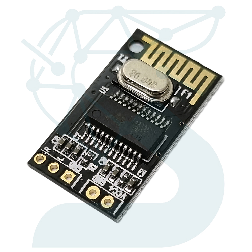 روی برد یک آنتن PCB مجتمع دیده میشود که عملکرد پایدار و برد مناسب را حتی بدون آنتن خارجی فراهم میکند. نسخه بلوتوث 5.1 علاوه بر پایداری ارتباط، تأخیر پایینتری نیز ارائه میدهد. خروجیهای L/R/GND در لبه پایینی برد قرار دارند و امکان اتصال مستقیم به آمپلیفایر یا ورودی AUX را فراهم میکنند. تغذیه این ماژول معمولاً 5 ولت است و بهخاطر سادگی طراحی، نصب و راهاندازی آن بسیار سریع انجام میشود.