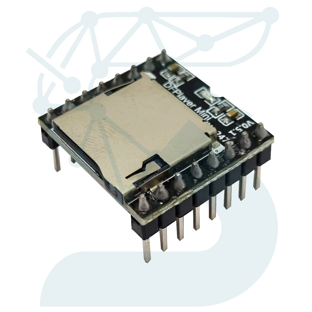 ماژول DFPlayer Mini یک برد پخش صدای کوچک و جامع برای پروژههای الکترونیکی است که به سادگی انواع فایل صوتی mp3 و wav را از کارت microSD پخش میکند. این ماژول دارای تقویتکننده داخلی و خروجی مستقیم اسپیکر بوده و قابلیت کنترل کامل به صورت مستقل یا با میکروکنترلر (مانند آردوینو، ESP و AVR) را داراست.