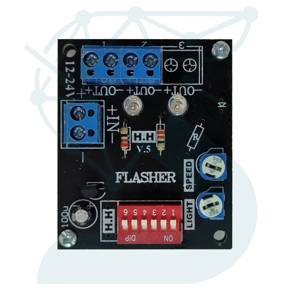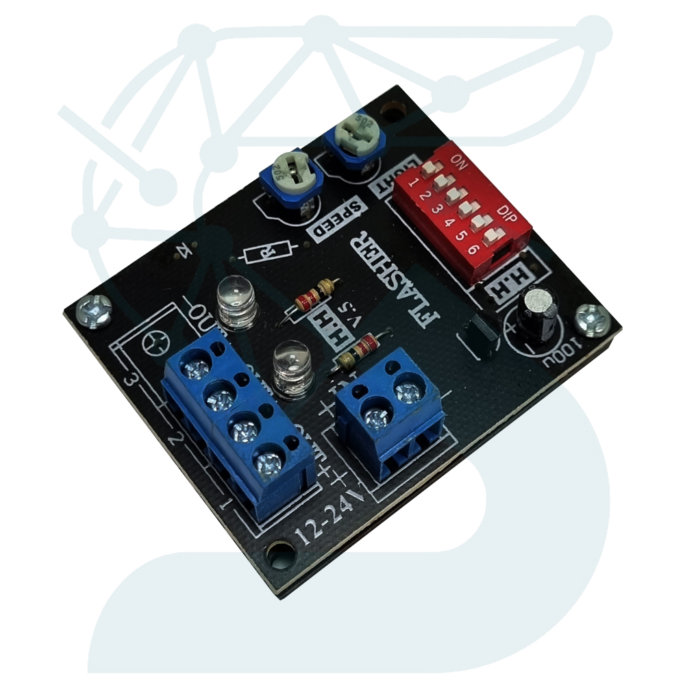ماژول فلاشر افکتدار دوکاناله 12–24 ولت با DIP‑Switch یک برد همهکاره برای ایجاد الگوهای چشمکزن قابل تنظیم در چراغهای LED است. هسته عملکرد این ماژول روی یک نوسانساز مقاوم و پایدار طراحی شده که امکان تولید افکتهای مختلف را با دقت قابلقبول فراهم میکند.