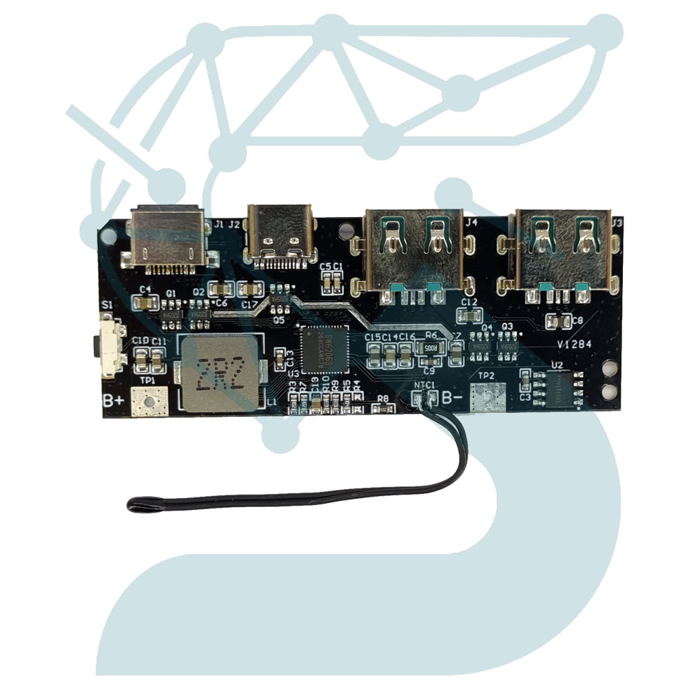 ماژول پاوربانک فست شارژ ۲۲.۵ وات با سنسور NTC، یک راهحل کارآمد برای ساخت پاوربانکهای قابل حمل با قابلیت شارژ سریع (Fast Charge) است. این ماژول از خروجیهای USB-A پشتیبانی میکند و فاقد خروجی تایپسی میباشد. وجود سنسور NTC باعث محافظت حرارتی پیشرفته بر روی باتریهای لیتیوم یون میشود و امنیت و طول عمر تجهیزات را افزایش میدهد. این برد معمولاً مناسب افرادی است که به دنبال ساخت پاوربانک پرقدرت، امن و دارای قابلیت تشخیص دمای باتری هستند.
