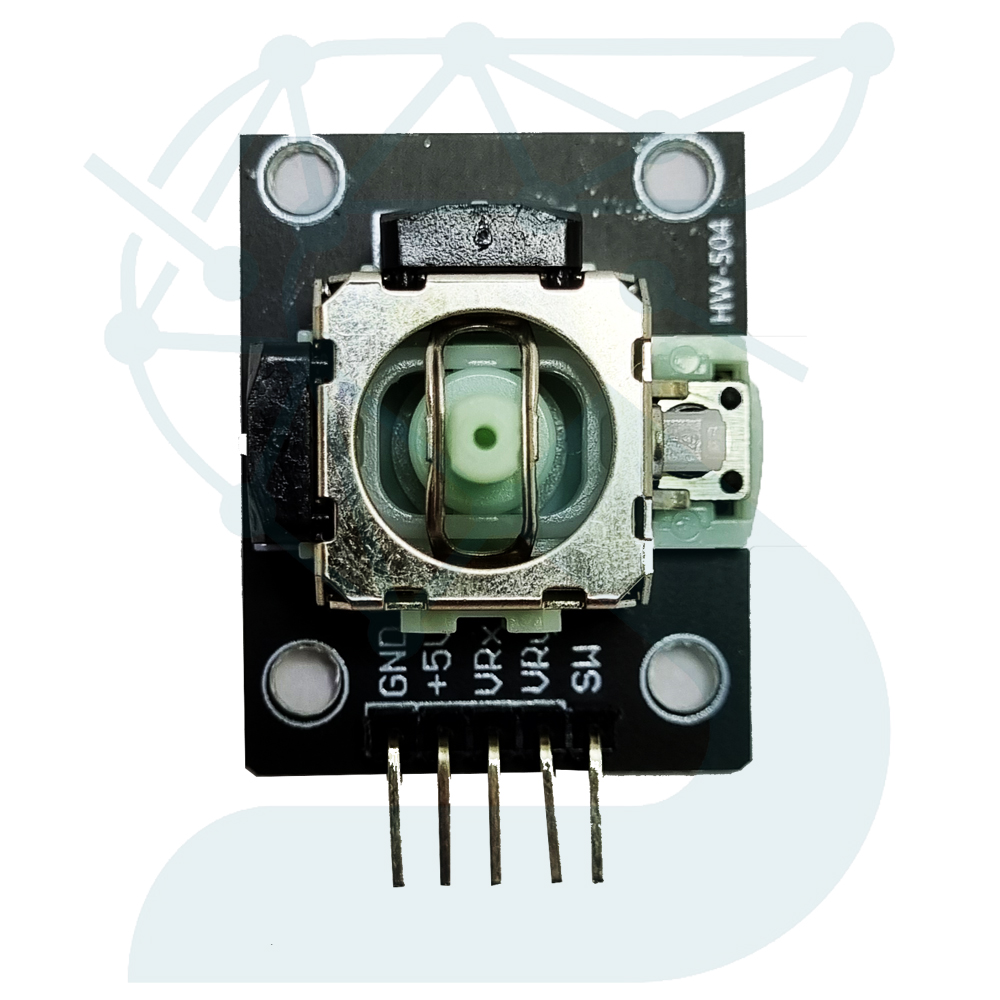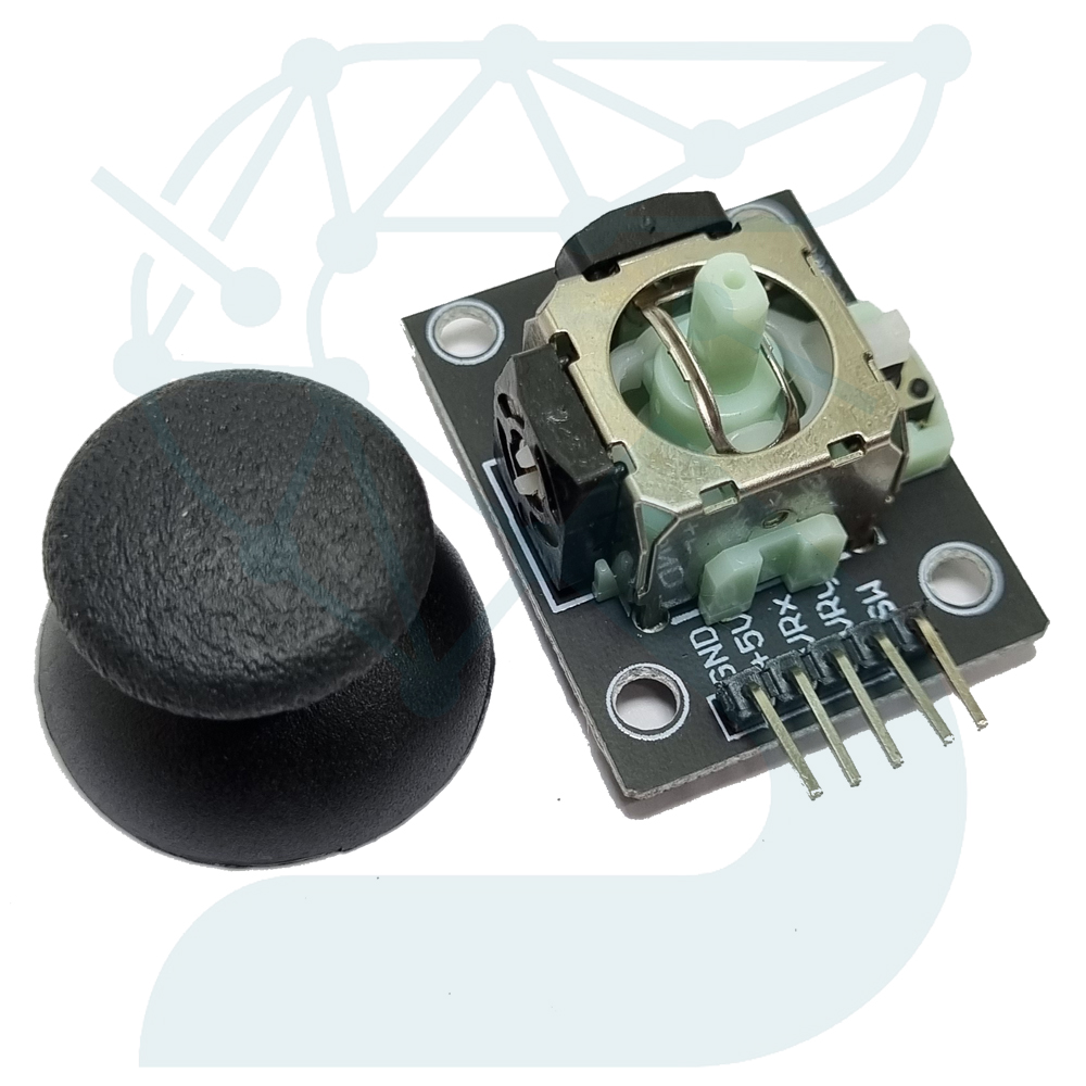 این ماژول ساختاری مشابه جویاستیک دستههای بازی دارد و بهراحتی میتواند جهت کنترل حرکت ربات، بازوهای مکانیکی، منوها یا پارامترهای نرمافزاری استفاده شود.