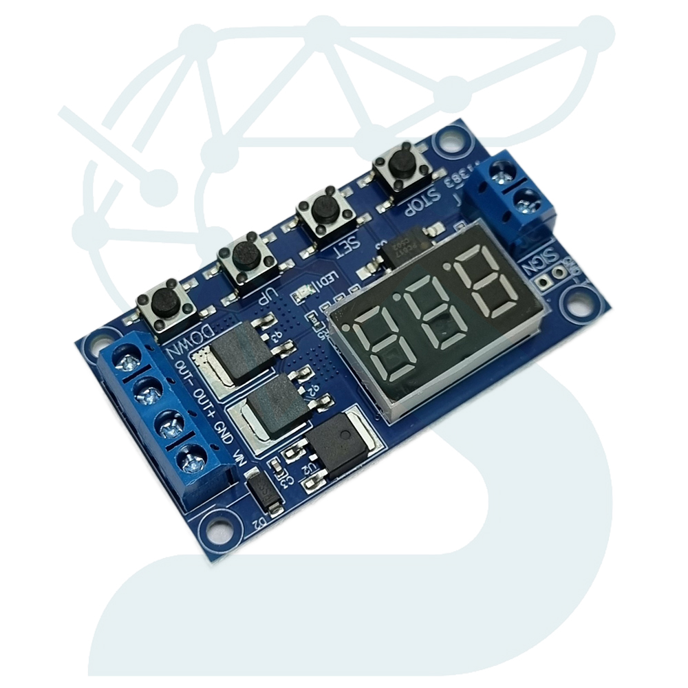 این ماژول یک تایمر دیجیتال انعطافپذیر با نمایشگر سهرقمی است که توانایی کنترل بارهای DC را از طریق ماسفت قدرت فراهم میکند. به دلیل استفاده از خروجی ماسفت، این ماژول برای بارهای سریع، موتورها، پمپها، LEDهای توان بالا و سیستمهای نیازمند سوئیچینگ بدون نویز مکانیکی (برخلاف رله) بسیار مناسب است.
