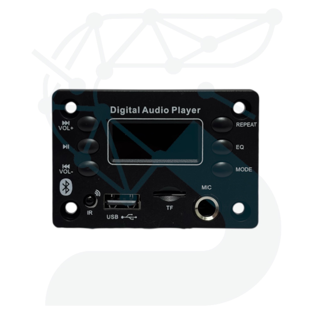 قلب این ماژول یک دیکودر MP3/WMA/WAV بههمراه آمپلیفایر استریو داخلی است که توان خروجی اسمی 2×30 وات را در شرایط تغذیه مناسب ارائه میدهد. ورودی تغذیه مستقیم 7 تا 16 ولت DC امکان استفاده از باتری، آداپتور یا برق خودرو را فراهم میسازد.