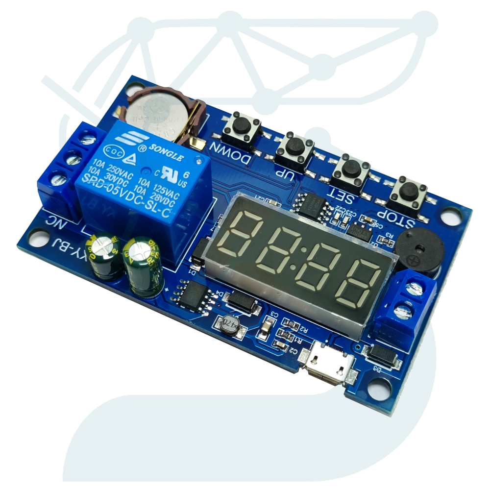 ماژول تایمر دیجیتال با ولتاژ کاری گسترده از 6 تا 30 ولت DC، یکی از پرکاربردترین بردهای کنترل زمان در پروژههای الکترونیکی و صنعتی سبک است. این ماژول علاوه بر داشتن نمایشگر دیجیتال چهار رقمی و رله قدرتدار داخلی، قابلیت تنظیم دقیق زمان قطع و وصل خروجی را دارد و میتواند در حالات مختلف مانند تاخیر در شروع، تاخیر در خاموشی، تایمر تناوبی و عملکرد لحظهای عمل کند.