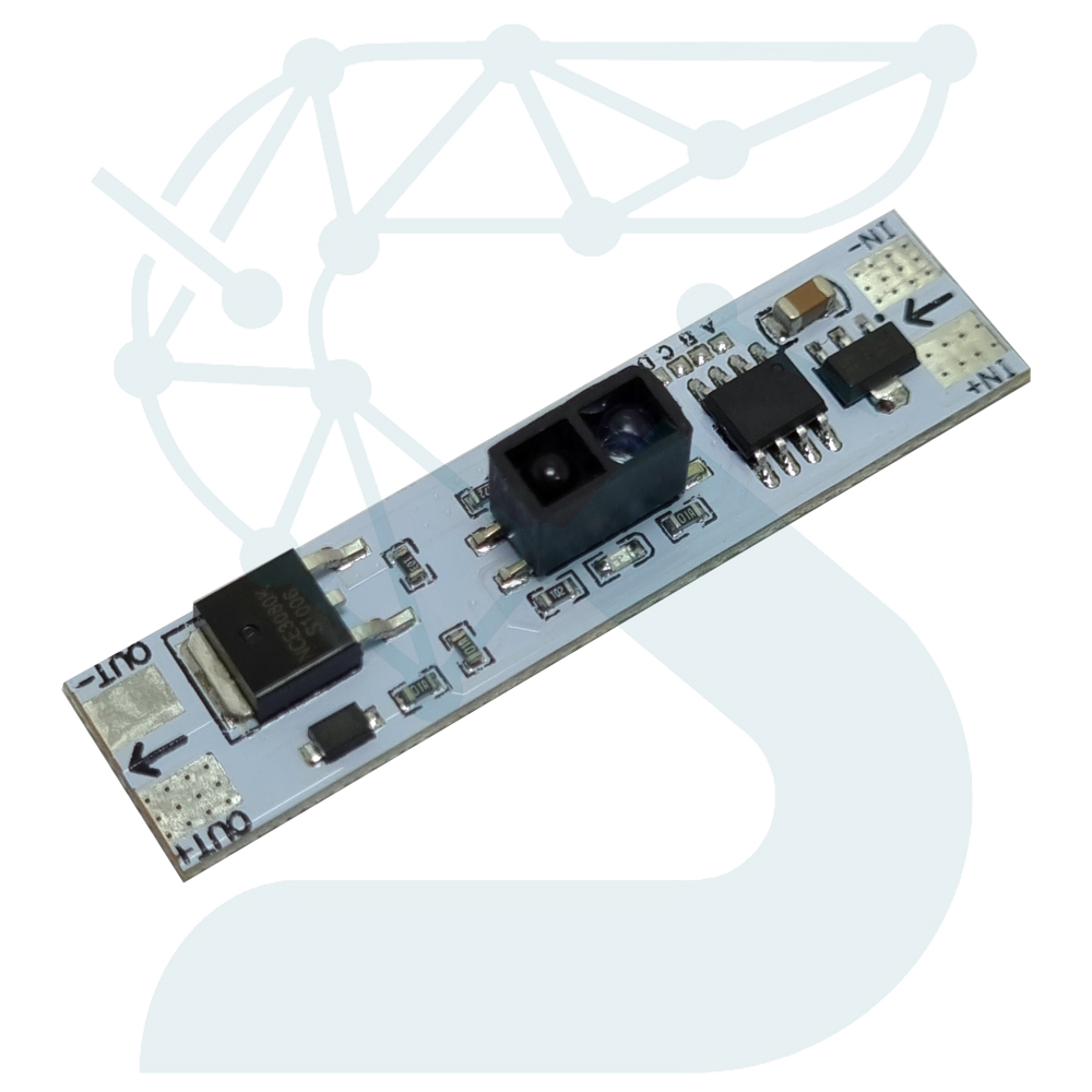 در مرکز ماژول یک سنسور مادونقرمز همراه با مدار پردازش قرار دارد. وقتی جسمی در محدوده تشخیص سنسور حرکت میکند (معمولاً چند سانتیمتر)، سیگنال دریافتی تغییر کرده و ماژول فرمان وصل یا قطع جریان را به خروجی صادر میکند. این خروجی میتواند مستقیماً به نوار LED یا بارهای DC متصل شود.