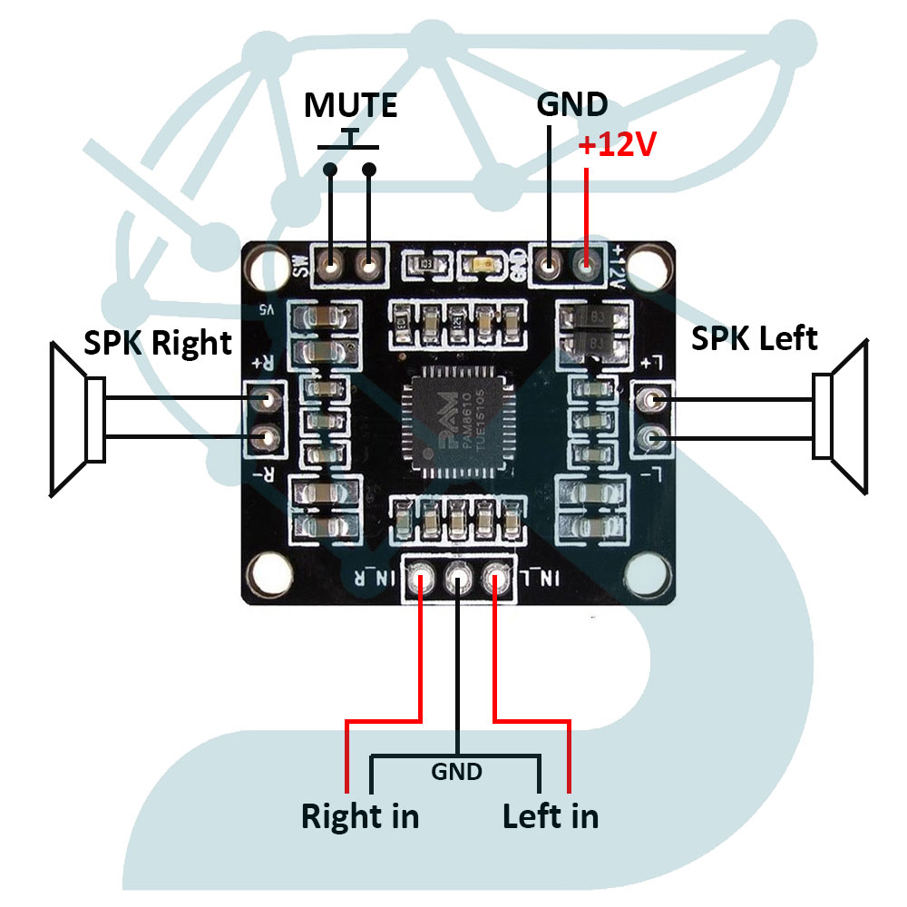 این ماژول با ولتاژ کاری ۶ تا ۱۵ ولت DC (مقدار پیشنهادی ۱۲ ولت) کار میکند و میتواند سیگنالهای صوتی ورودی استریو را تقویت کند. به دلیل ابعاد کوچک (۲۸×۲۲ میلیمتر)، امکان نصب آن در انواع فضاهای محدود وجود دارد.