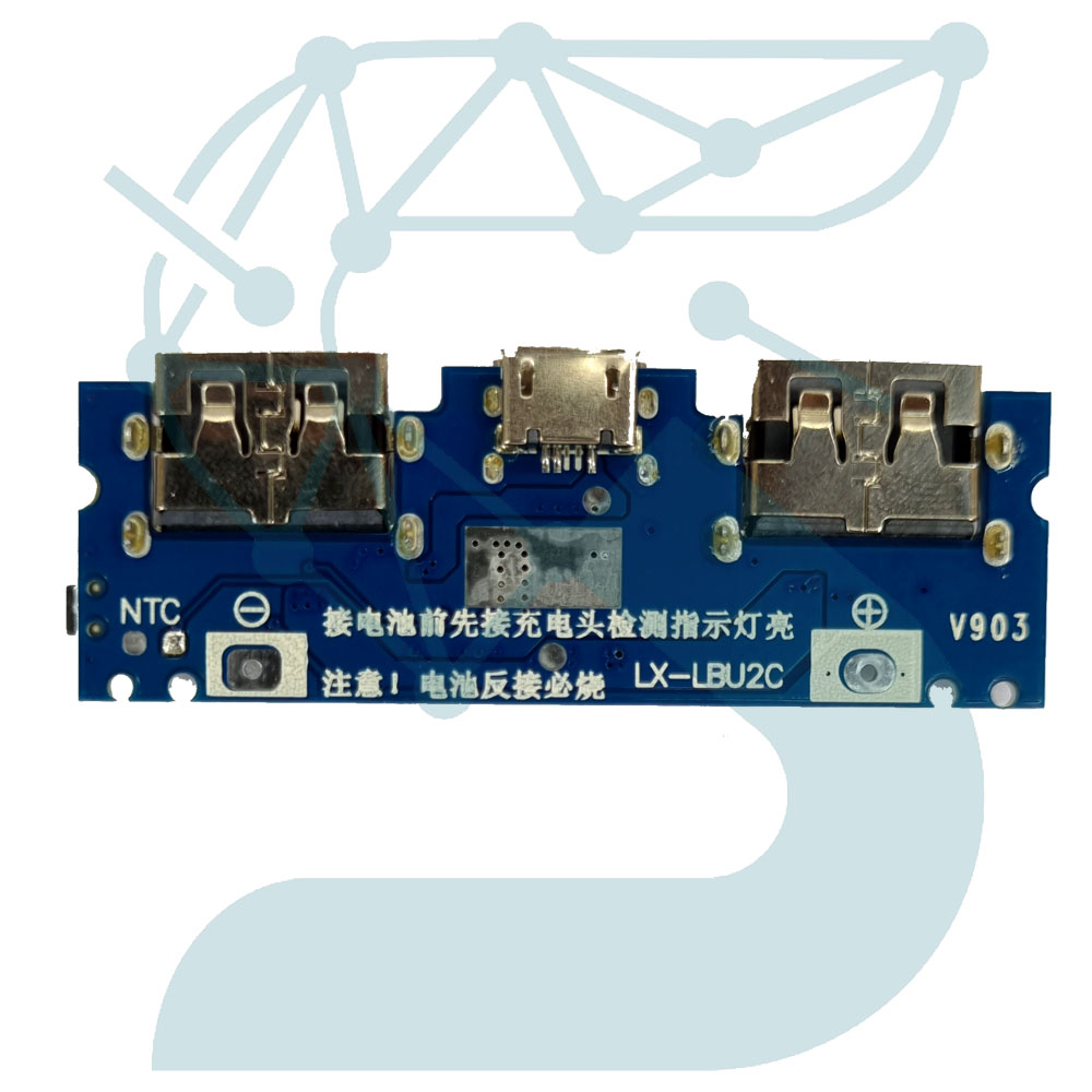 ماژول LX-LBU2C یک برد جمع‌وجور و کاربردی برای ساخت پاوربانک با استفاده از سلول لیتیوم یون (18650 یا مشابه) است. این ماژول علاوه‌بر ارائه دو خروجی USB-A برای شارژ همزمان دو دستگاه، قابلیت شارژ باتری از طریق هر دو پورت Micro USB و Type-C را دارد. همچنین مدار حفاظت و نمایشگر LED برای کنترل وضعیت باتری روی برد تعبیه شده تا هم امنیت و هم کاربری آسان را در یک محصول اقتصادی فراهم کند.
