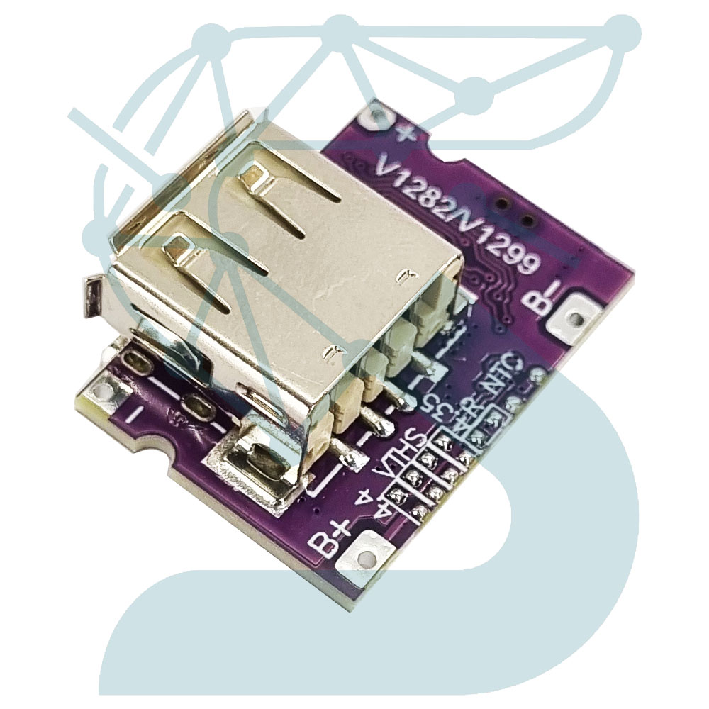 مدار Boost داخلی دارد افزایش ولتاژ باتری به 5 ولت برای خروجی USB