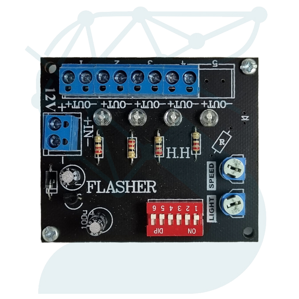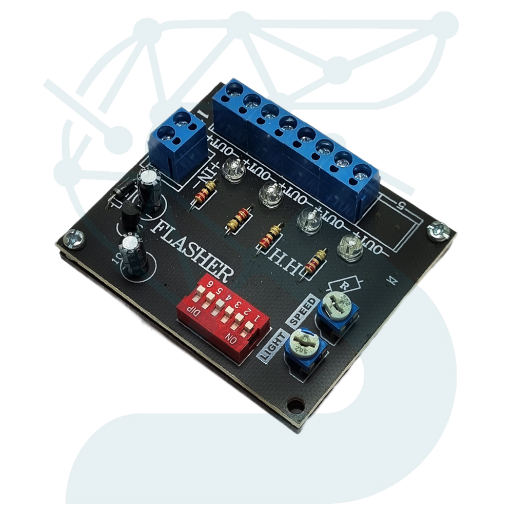 ماژول فلاشر افکتدار چهارکاناله 12 ولت با DIP‑Switch یک برد چشمکزن حرفهای و قابلاعتماد برای کنترل چهار خروجی LED است. این نسخه نسبت به مدلهای دو و سه کاناله، امکان اجرای افکتهای گستردهتر و هماهنگی نوری دقیقتر را فراهم میکند؛ چیزی که در پروژههایی مثل چراغهای پلیسی چهارخطه، تابلوهای هشدار چندبخشی و نورپردازیهای ریتمیک کاربرد زیادی دارد.