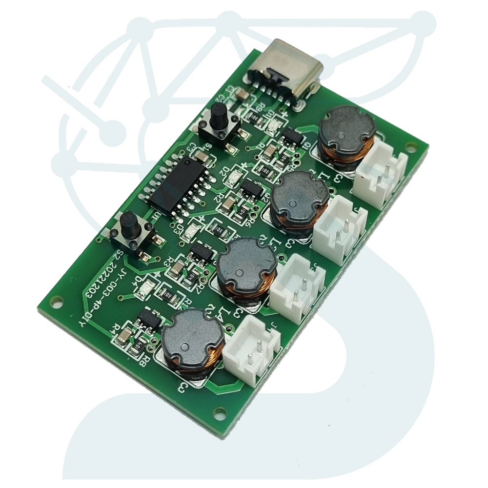 ماژول بخار سرد چهار تایی با ورودی Type-C، نسل جدید مهسازهای التراسونیک است که چهار دیسک پیزوالکتریک مستقل را در یک پکیج فشرده جای داده تا حجم مه تولیدی را به حداکثر برساند. این ماژول با مجهز شدن به درگاه Type-C، از تغذیه مستقیم با برق ۵ ولت DC پشتیبانی میکند. برخلاف مدلهای سادهتر، طراحی این محصول امکان کنترل دقیقتر بر خروجی مه را از طریق کلیدهای فیزیکی فراهم میآورد تا بتوانید حالتهای مختلف (فعالسازی ۱، ۲ یا ۴ پیزو) را انتخاب کنید. همچنین، برای تضمین عملکرد مداوم و کارآمد، در زیر هر دیسک یک پد جاذب آب (Water Pad) تعبیه شده است تا رطوبت به طور کامل و یکنواخت به سطح پیزوها منتقل شود. عملکرد آن کاملاً بیصدا و یکنواخت بوده و با آب تمیز یا مقطر سازگار است.