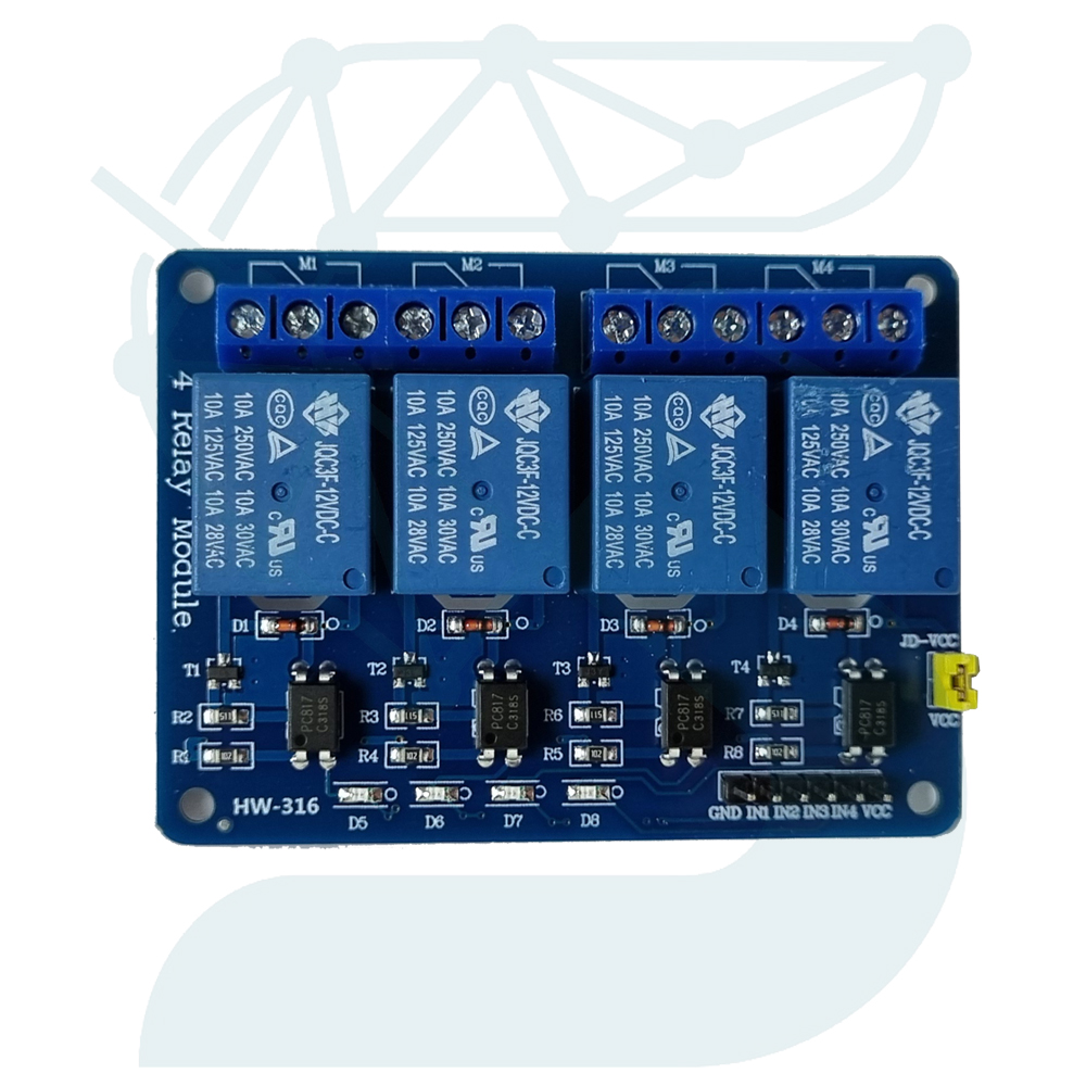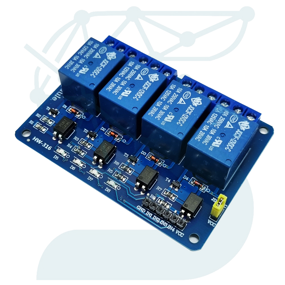 ماژول رله 4 کانال یکی از پرکاربردترین ماژولهای کنترل توان در سیستمهای الکترونیکی و اتوماسیون است. این ماژول با ولتاژ تحریک 12 ولت DC طراحی شده و امکان کنترل همزمان چهار رله مستقل را فراهم میسازد.
