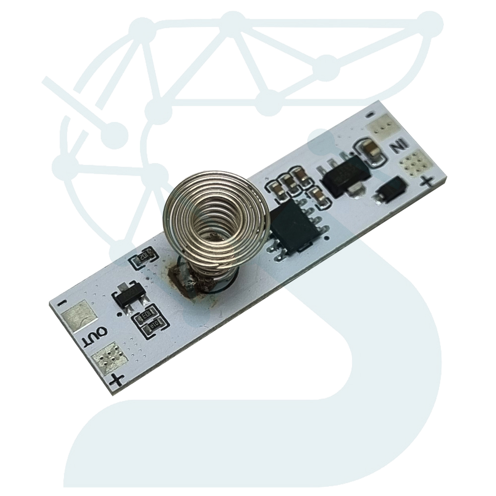 با لمس فنر فلزی تعبیه‌شده در ماژول، بار خروجی (مانند نوار LED، لامپ DC یا چراغ خواب) به نرمی روشن و خاموش شده و در حالت نگه‌داشتن انگشت، شدت نور به‌صورت تدریجی افزایش یا کاهش می‌یابد. این عملکرد آرام و بدون نویز، به لطف تراشه پردازشگر دیمر داخلی انجام می‌شود.