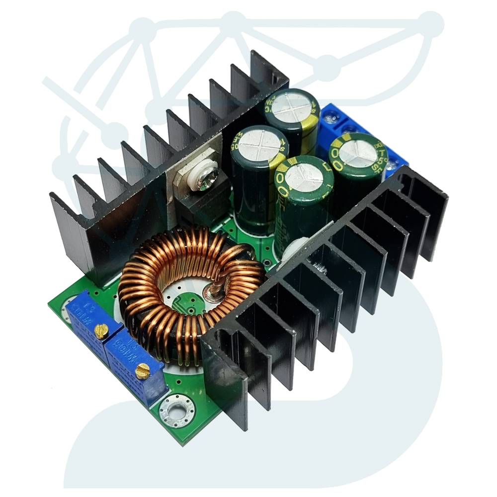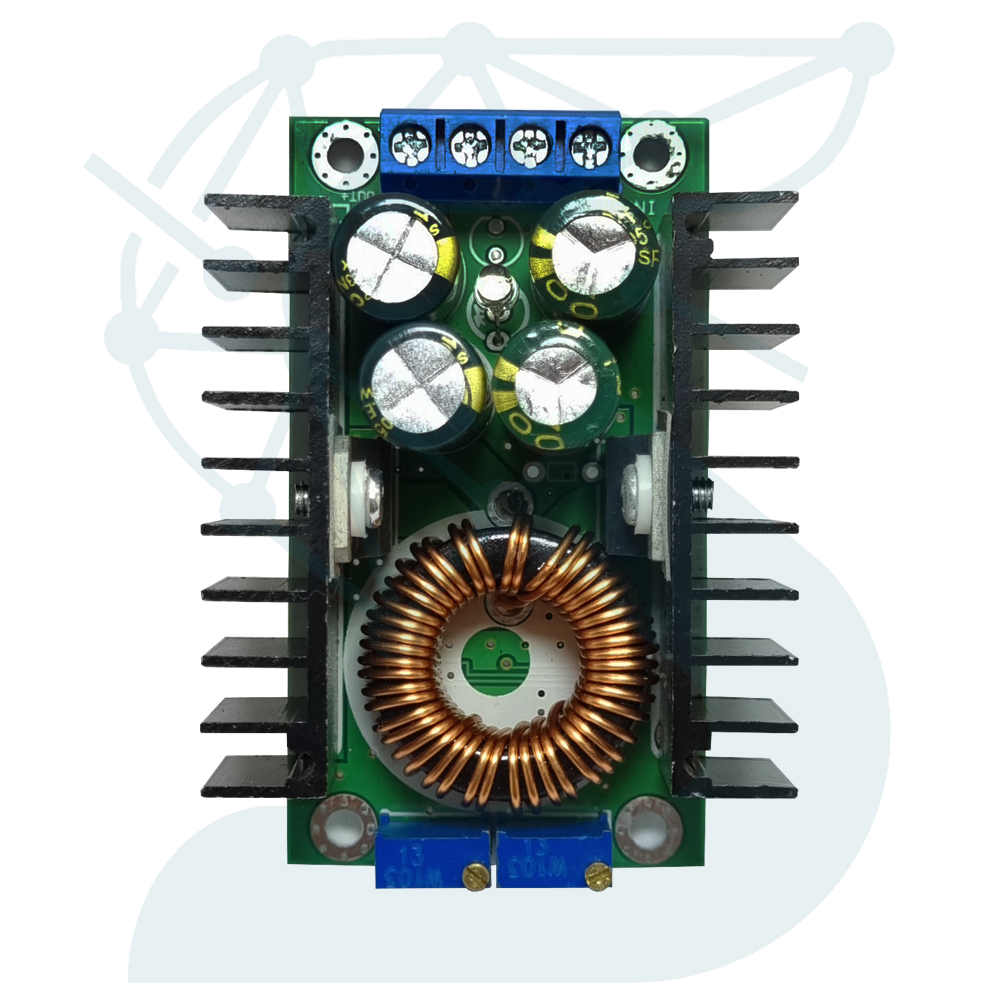 در این ماژول، ولتاژ ورودی توسط مدار سوئیچینگ به ولتاژ پایینتر با نسبت قابل تنظیم تبدیل میشود. پتانسیومتر روی برد مقدار خروجی را بین حدود 1.25 ولت تا 35 ولت DC تنظیم میکند. تغذیه ورودی معمولاً بین DC 8 تا 40 ولت است.