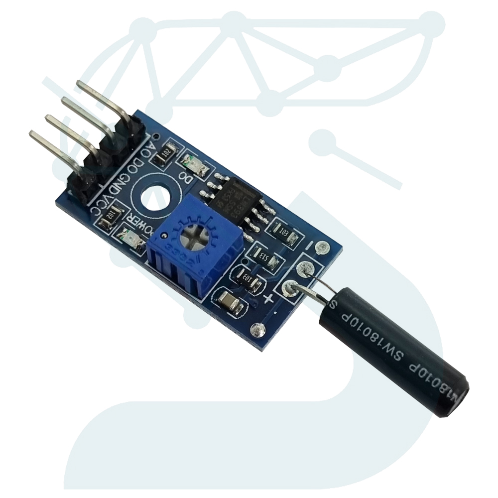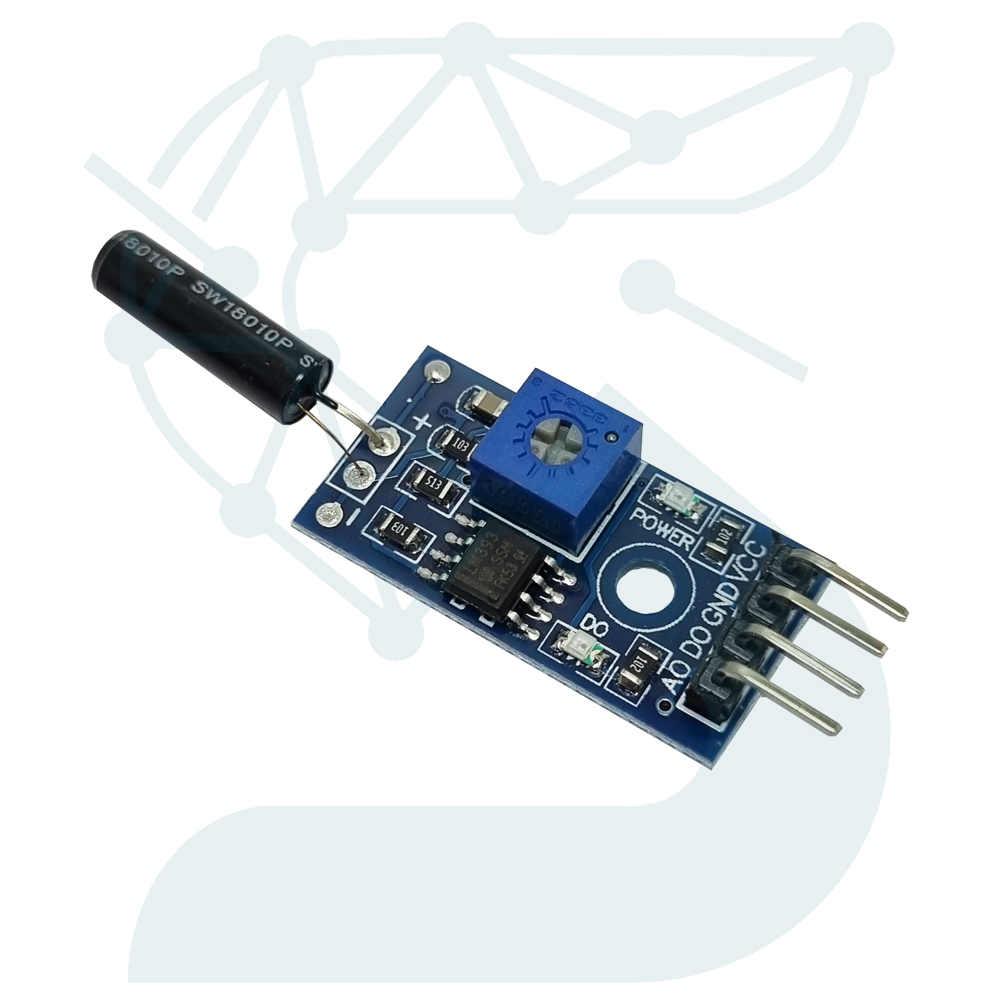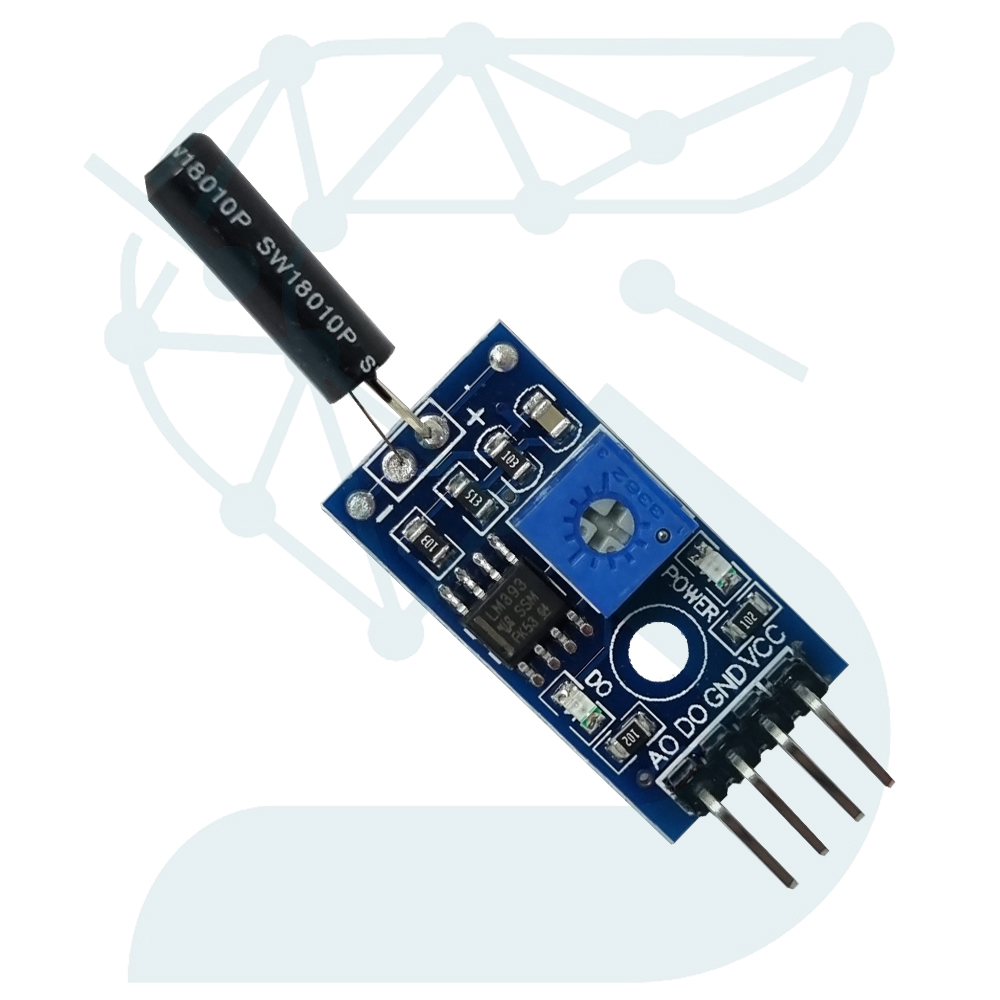 نسخه برد آماده SW‑18010P علاوه بر سنسور، یک مدار تقویت و فیلتر ساده دارد تا خروجی را به سطح منطقی TTL تبدیل کند، بنابراین میتواند بدون سختافزار اضافی به میکروکنترلرها مانند آردوینو، AVR یا ESP وصل شود. این ماژول برای آشکارسازی ضربه، تکان سریع یا ارتعاش خفیف در پروژههای حفاظتی و هشدار بسیار پرکاربرد است.