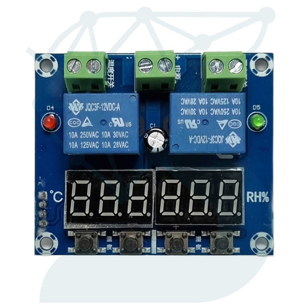 چهار کلید فشاری تعبیه‌شده بر روی برد امکان تنظیم حدود بالا و پایین برای دما و رطوبت را فراهم می‌سازند، تا در صورت عبور مقدار اندازه‌گیری‌شده از محدوده تنظیم‌شده، خروجی‌های رله فعال یا غیرفعال شوند.
