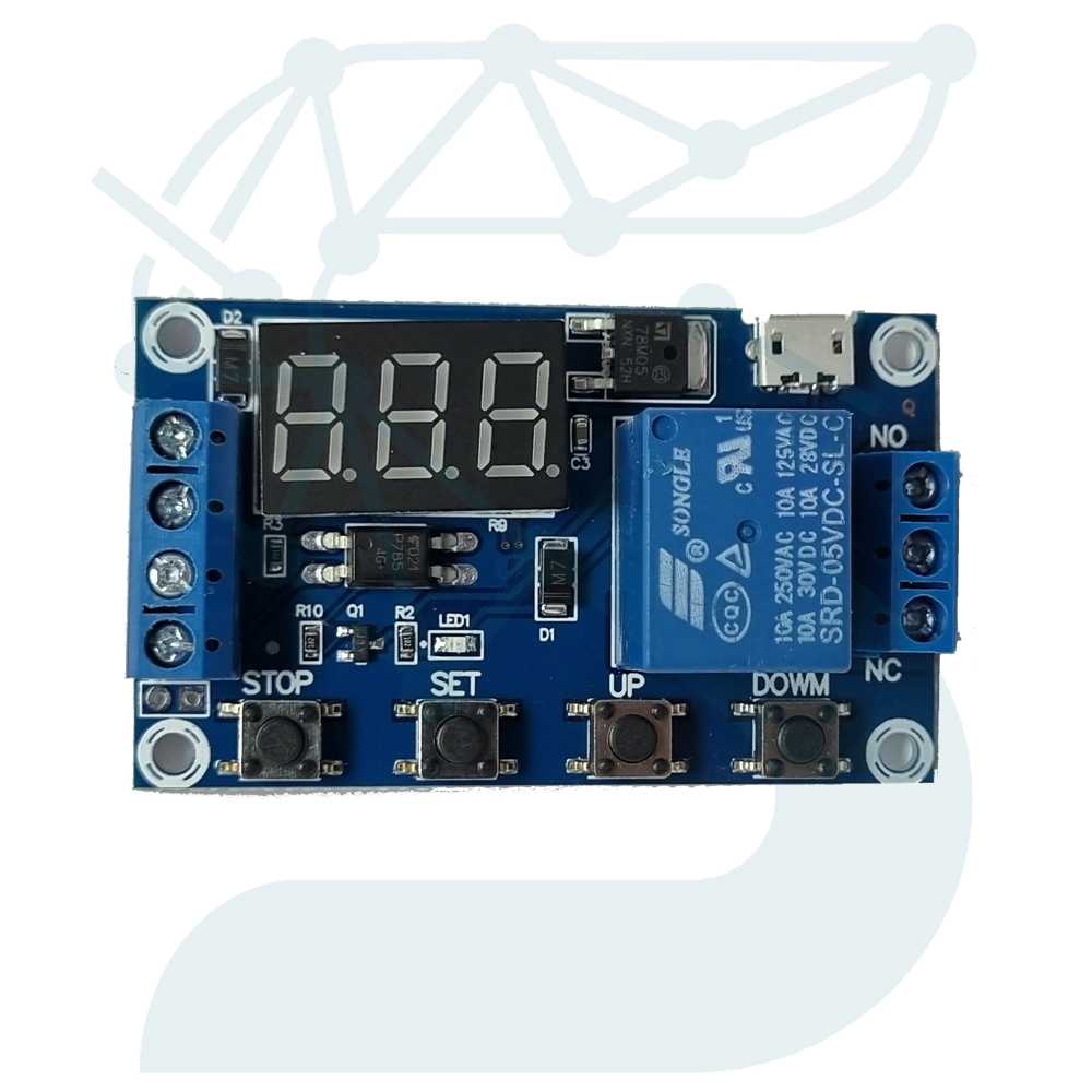 نمایشگر دیجیتال سهرقمی مقدار زمان تنظیمشده را نشان میدهد و در طول فرآیند کاری، چراغ وضعیت رله (LED کوچک کنار آن) فعال یا غیرفعال بودن خروجی را مشخص میکند. پس از قطع تغذیه، آخرین تنظیمات در حافظه داخلی حفظ میشوند. برای دقت بالا در زمانبندی پیشنهاد میشود از منبع تغذیه پایدار و نویز کم استفاده شود.
